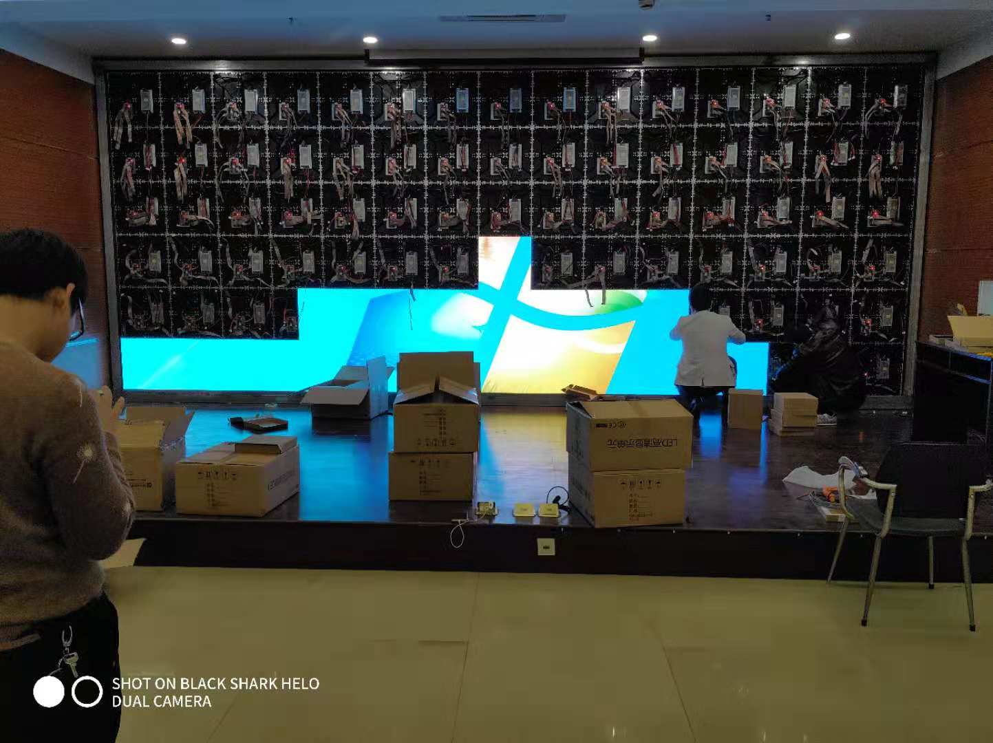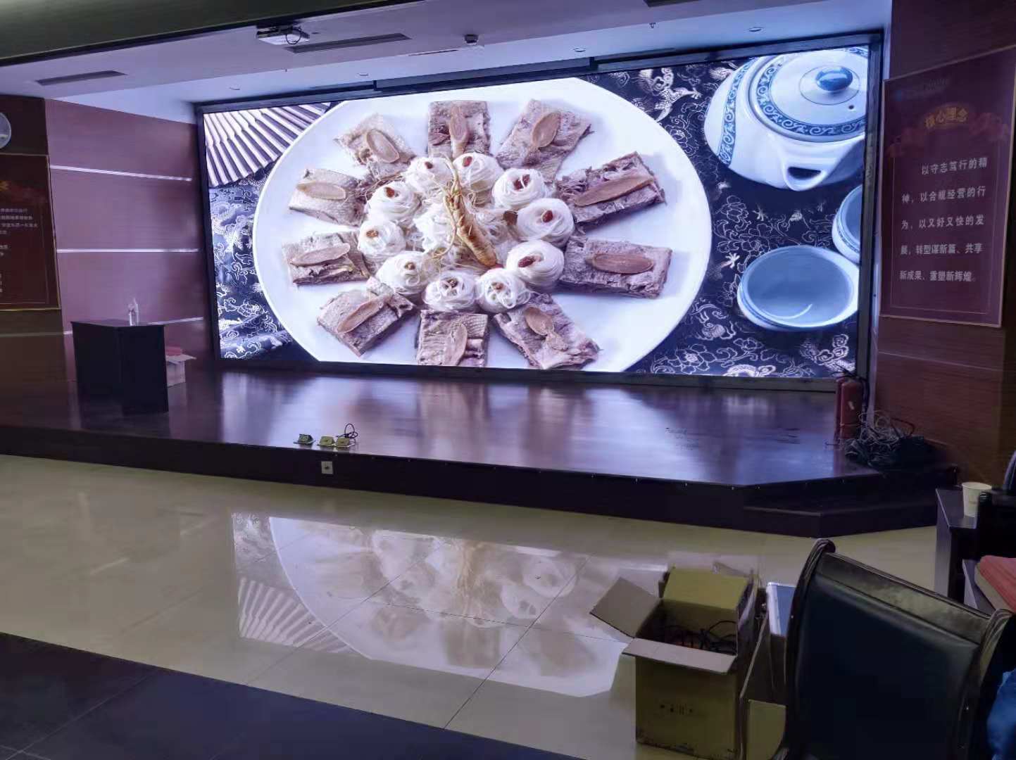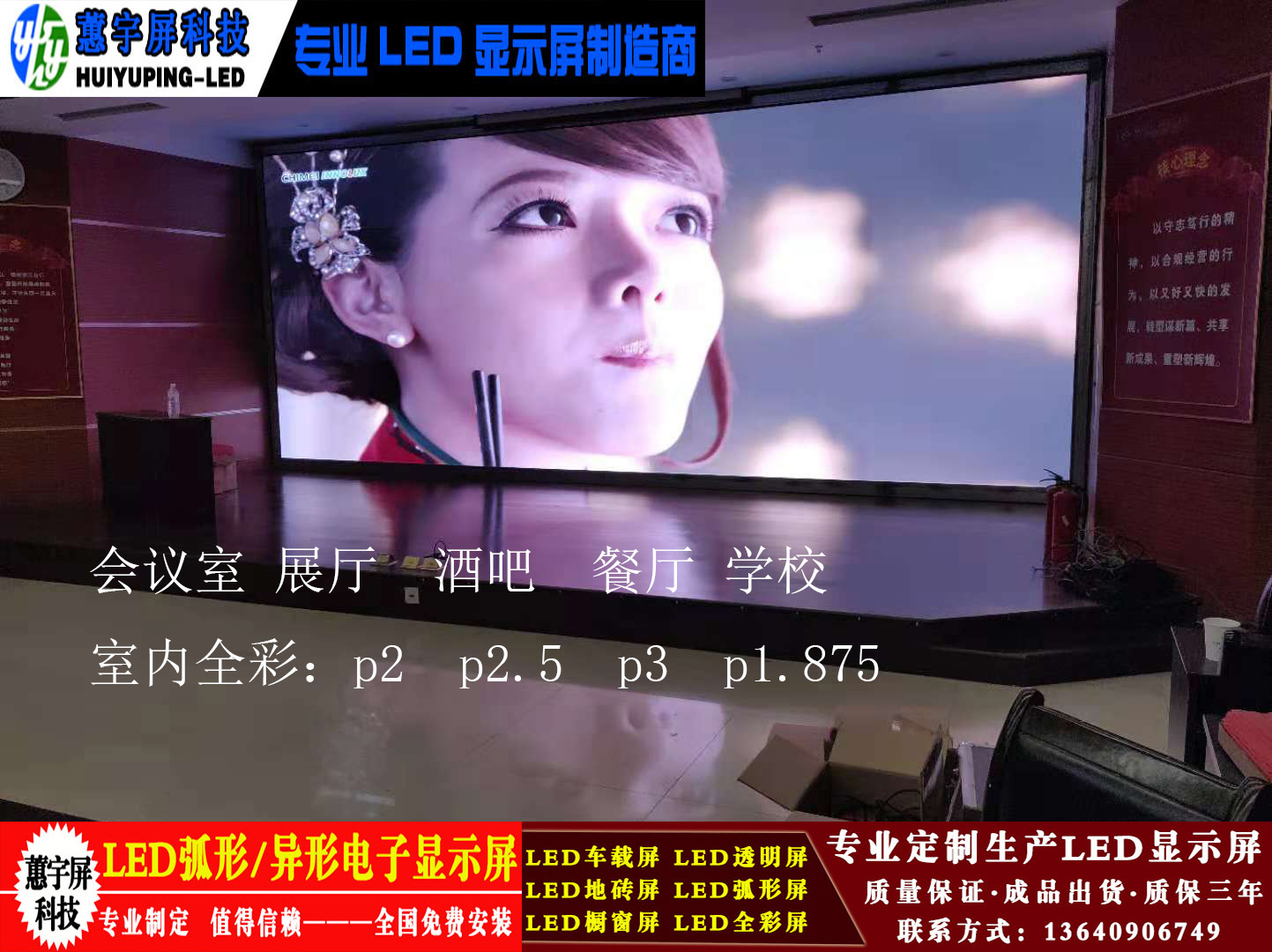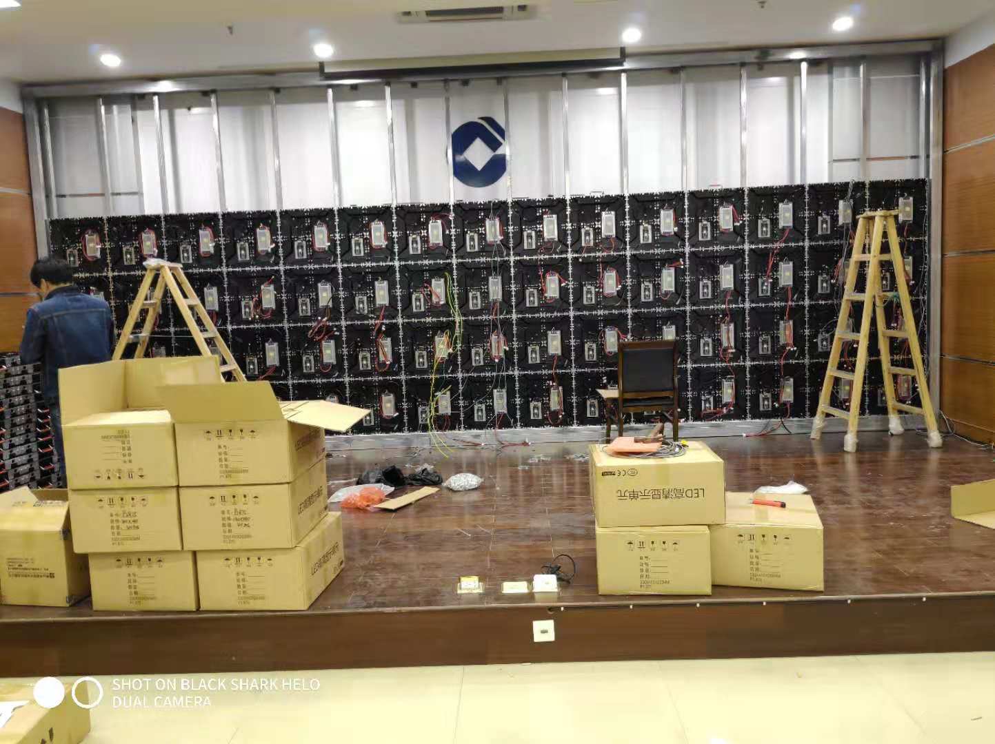 衢州建設(shè)衢州分行總部會議廳LED全彩屏采用p1.875小間距LED顯示屏 燈珠采用晶臺封裝驅(qū)動采用高刷芯片2053 刷新達到3840
